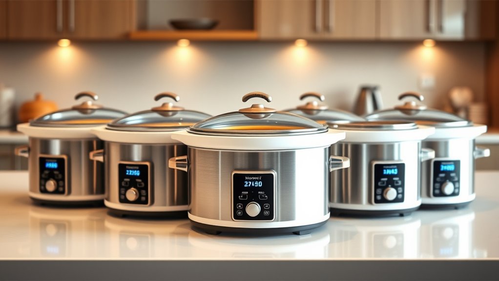 - Choose programmable slow cookers with precise digital timers and adjustable temperature controls for versatile cooking.