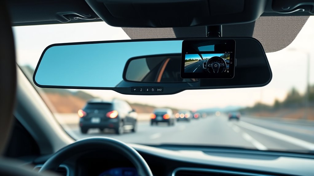 Mirror dash cams generally don’t impact rear visibility much because they’re designed to fit seamlessly over or replace your existing mirror. I’ve found that they provide a clear, unobstructed view of the road behind me, enhancing safety without sacrificing visibility. Some models even have adjustable angles, so I can customize my view. Overall, they improve awareness and safety without compromising my rear view while driving.
