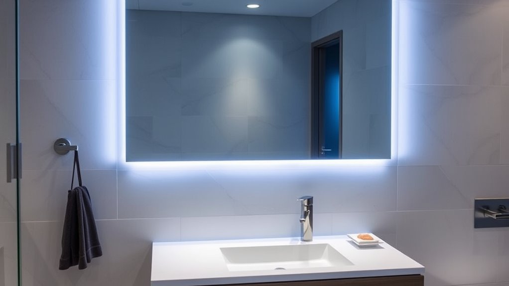 These smart bathroom mirrors are pretty energy-efficient, I’d say. They use LED lighting, which consumes less power than traditional bulbs, and many models have automatic on/off sensors that turn off when you’re not around. Plus, some feature energy-saving modes to reduce energy use even further. Overall, I find them an eco-friendly choice that helps save energy without sacrificing style or function.