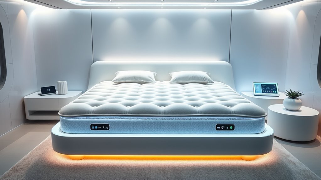 If you’re curious about the best smart beds and mattresses for 2025, I’ve got you covered. From hybrid mattresses with pocket springs and CertiPUR-US certification to adjustable beds with customizable positions, heated mattress pads, and supportive foundations, there’s a perfect sleep solution for everyone. These options offer comfort, support, and tech features to enhance your sleep quality. Keep exploring to discover the top choices to transform your nights into restful, rejuvenating experiences.