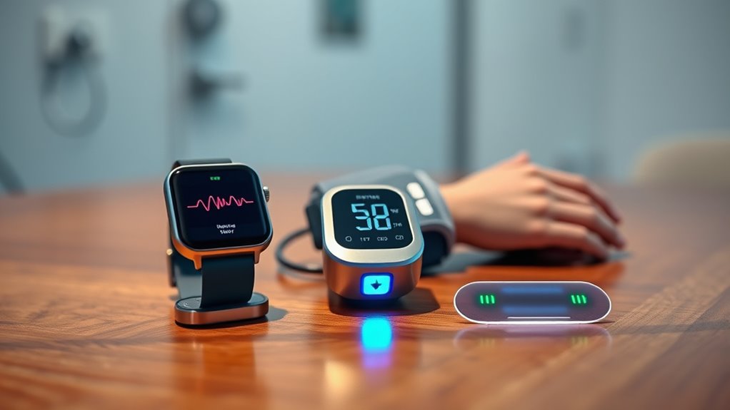 You’re probably wondering how secure your health data really is on these devices. Honestly, it varies—some brands prioritize outstanding encryption and strict privacy policies, making your data quite safe. Others might have vulnerabilities, so it’s essential to check each device’s security features. I always recommend choosing trusted brands and enabling all security options. Your health info is sensitive, so don’t overlook how well it’s protected!