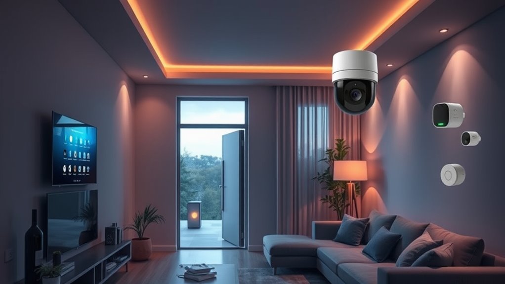 As I picture my home wrapped in a digital shield—bright cameras glinting like watchful eyes and sensors quietly standing guard—I realize the right smart security system transforms my space into a fortress of peace. Whether it’s the sleek touchscreens or seamless app alerts, these systems turn everyday moments into confident ones. With the perfect setup, I can rest easy, knowing my home’s safety is as natural as the comforting glow of a well-guarded sanctuary.