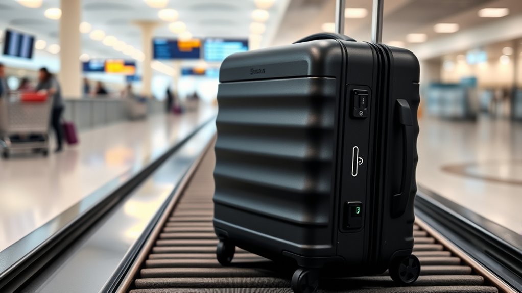 Most smart luggage GPS trackers are compatible with airline baggage policies, but I always double-check before flying. While the trackers themselves are generally permitted, batteries or power banks might have restrictions. I recommend removing or turning off the tracker during security checks if necessary. Staying informed about specific airline rules helps guarantee your smart luggage stays with you, avoiding any surprises or delays at the airport.