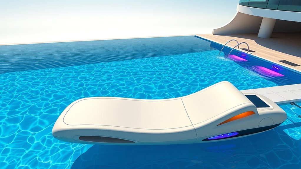 If you’re looking to make swimming smarter and more fun, there are plenty of innovative options. I recommend smart devices like water testers, wireless thermometers, programmable WiFi pool timers, and solar-powered floating lights to enhance safety and ambiance. High-tech robotic cleaners and durable filters also keep pools sparkling with less effort. If you keep exploring, you’ll discover how these devices can elevate your pool experience and simplify maintenance seamlessly.