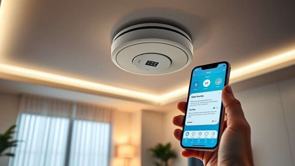 A smart smoke detector’s app features are essential for effective and convenient home safety management. I look for apps that let me monitor my detector remotely, receive instant notifications, and easily control functions like silencing alarms or testing sensors. Support for device sharing is important, so my family and friends can also receive alerts and help manage the system. A good app provides clear, real-time alerts for smoke, carbon monoxide, low batteries, or system faults. Compatibility with both iOS and Android ensures I can access the system from any device, and integration with my smart home platform simplifies management. Additional features like remote alarm testing, location naming, and viewing history make it easier to stay on top of my home’s safety, providing peace of mind.