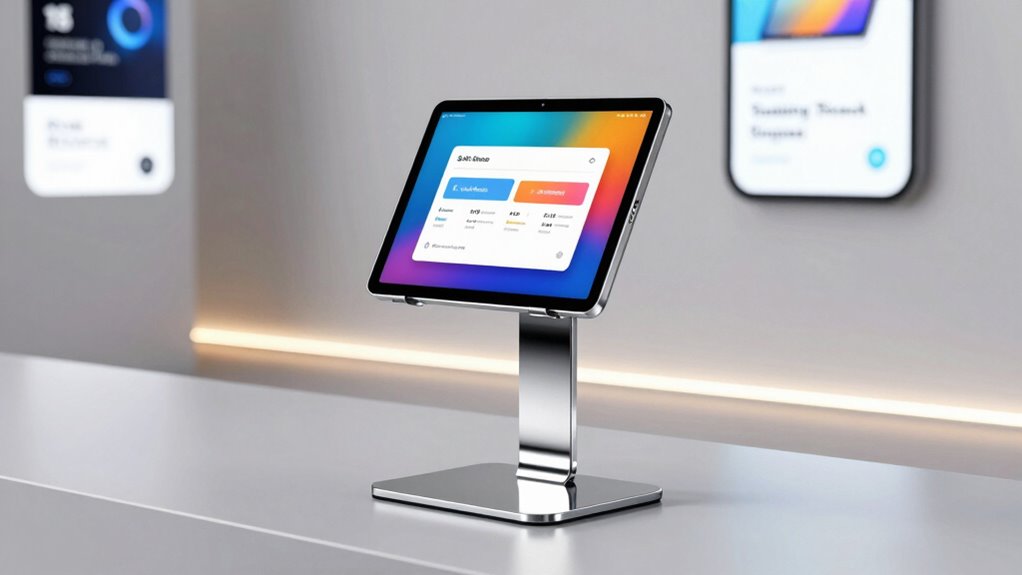 Did you know that over 80% of kiosk stands are designed to be compatible with multiple tablet brands? I’ve found that most modern kiosk stands are pretty versatile, supporting popular tablets like iPads, Samsung, and Amazon Fire. However, it’s always smart to double-check the specifications before purchasing. I recommend choosing stands with adjustable mounts to make certain of a snug fit, regardless of your tablet brand.