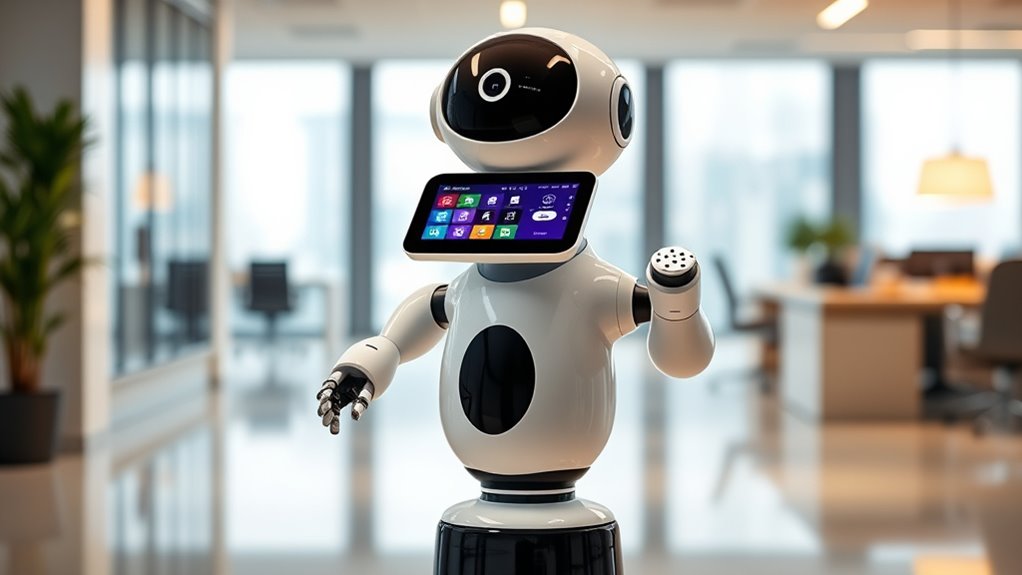 Telepresence robots handle internet connectivity issues by automatically adjusting their video quality and switching between connection types when possible. I’ve seen them reconnect quickly after brief drops, ensuring minimal disruption. Some models also feature backup options like cellular networks or local storage, which helps keep the connection stable. Overall, they’re designed to be resilient, so I can still stay engaged even when my internet isn’t perfect.