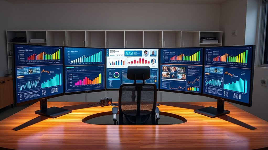 If you’re looking to boost productivity in 2025, I recommend considering ultrawide monitors like the SANSUI 34-inch curved gaming model, Monoprice’s 40-inch ultrawide, Samsung’s Viewfinity S65UA, and the ultra-wide 49-inch Samsung curve. LG’s QHD 34-inch adds color accuracy, while the SANSUI 240Hz display offers superb gaming and multitasking. Each screen has unique features, so exploring further can help you find the perfect fit for your work.