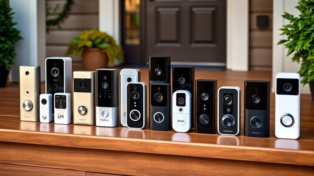 If you’re looking for the 15 best video doorbells on Amazon that blend security with style, I recommend checking out models like the eufy Security C31, Ring’s battery options, and the Chamberlain myQ for sleek design and reliable features. These doorbells offer high-resolution video, wide viewing angles, and smart integrations, all while enhancing curb appeal. Keep watching if you want to discover more about features, installation tips, and what makes these options stand out.