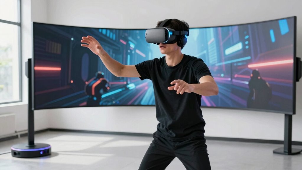 Did you know that a heavy VR headset can reduce immersion by 30%? I find that weight and comfort are vital for a seamless standing VR experience. When a headset feels light and well-balanced, I can play longer without fatigue or discomfort. If it’s too heavy or poorly designed, I tend to shift or stop sooner. So, choosing a comfortable, lightweight headset truly enhances my enjoyment and performance.