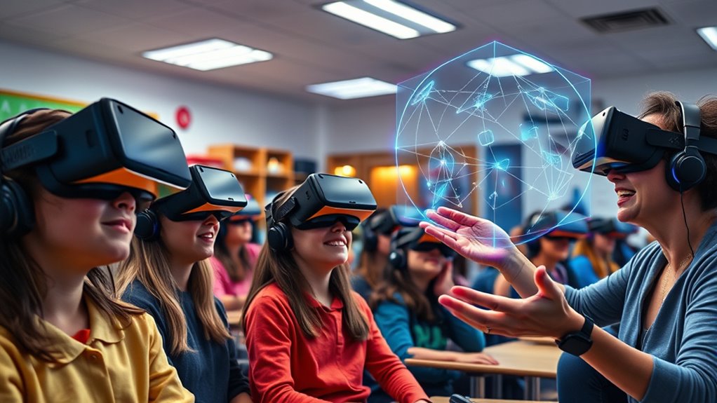 If you’re looking for the 14 best VR learning kits that turn education into an exciting adventure, I’ve got you covered. These kits blend immersive virtual reality with hands-on activities, covering subjects like dinosaurs, science, geography, animals, and more. They are designed for kids and curious learners of all ages, providing engaging experiences that make complex topics fun and accessible. Keep exploring to find out which setups can best boost learning and curiosity for your family or classroom.