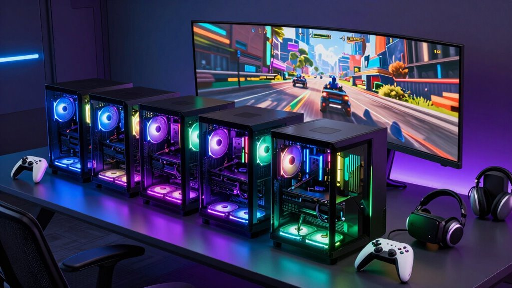 These gaming PCs are pretty future-proof for upcoming VR titles because they feature high-end components like powerful GPUs and fast processors. I’ve found that investing in the latest tech guarantees smooth gameplay and can handle new software updates. While no PC is completely future-proof, these setups give me confidence they’ll perform well for upcoming VR experiences, keeping me engaged and avoiding frequent upgrades.