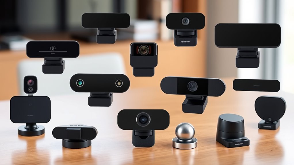 If you’re looking to keep your camera secure in 2025, I recommend checking out the top webcam privacy shutters like the CloudValley cover, Logitech C920S, Brio, and sleek slide covers for laptops and phones. These options offer easy, reliable protection against unauthorized access, dust, and damage, with models suited for various devices and preferences. Want to find the best fit for your setup? Keep exploring to discover features that suit your needs perfectly.