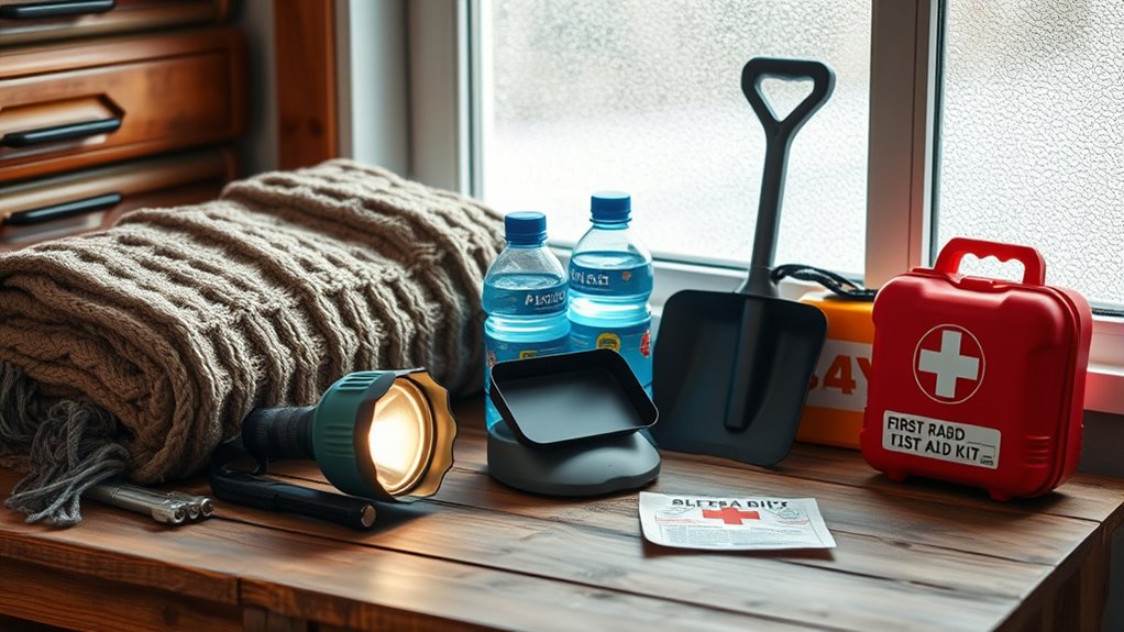I store my winter safety supplies in a cool, dry place, like a basement or closet, to prevent moisture damage. I make sure to check them monthly, replacing expired items and ensuring everything’s in good condition. I also keep a portable kit in my car, stocked with essentials like blankets, snacks, and a flashlight. Regular maintenance keeps my supplies ready for any winter emergency, giving me peace of mind.