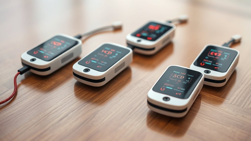 Understanding the price and subscription costs of wireless ECG monitors is essential to guarantee you get the best value for your investment. Some devices have a high upfront cost but no ongoing fees, making them more economical long-term. Others offer free core features but charge for advanced analyses, cloud storage, or data sharing. It’s important to compare the total cost of ownership, including hardware, software updates, and any subscription fees. Check if updates are free or require extra payments, as this can impact long-term expenses. By evaluating these factors, you can choose a monitor that fits your budget and provides the features you need without hidden costs. Being informed helps you avoid surprises and ensures you select a device that offers both affordability and reliable performance.